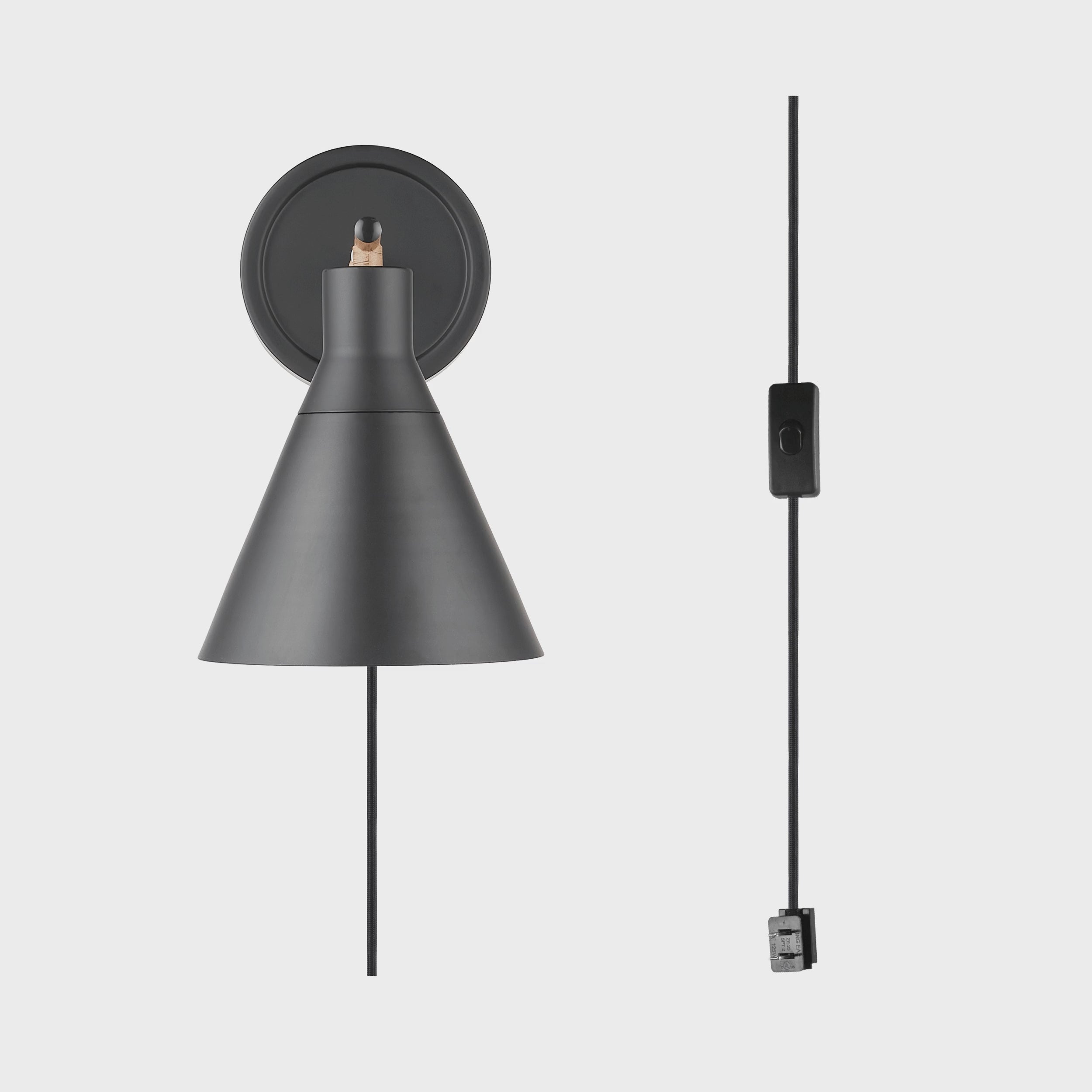 Applique murale enfichable ou fixe à 1 tête noir mat et accent similibois noyer et à intensité réglable avec gradateur rotatif sans incréments