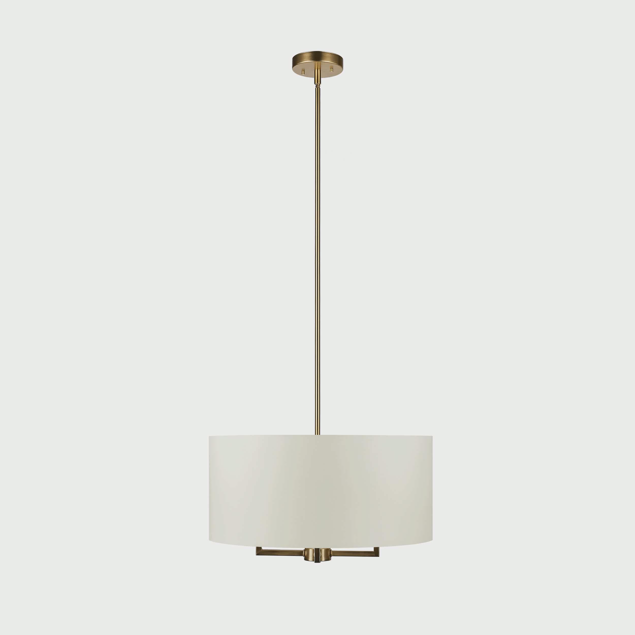 Luminaire suspendu à 4 ampoules au fini laiton mat avec abat-jour en tissu beige