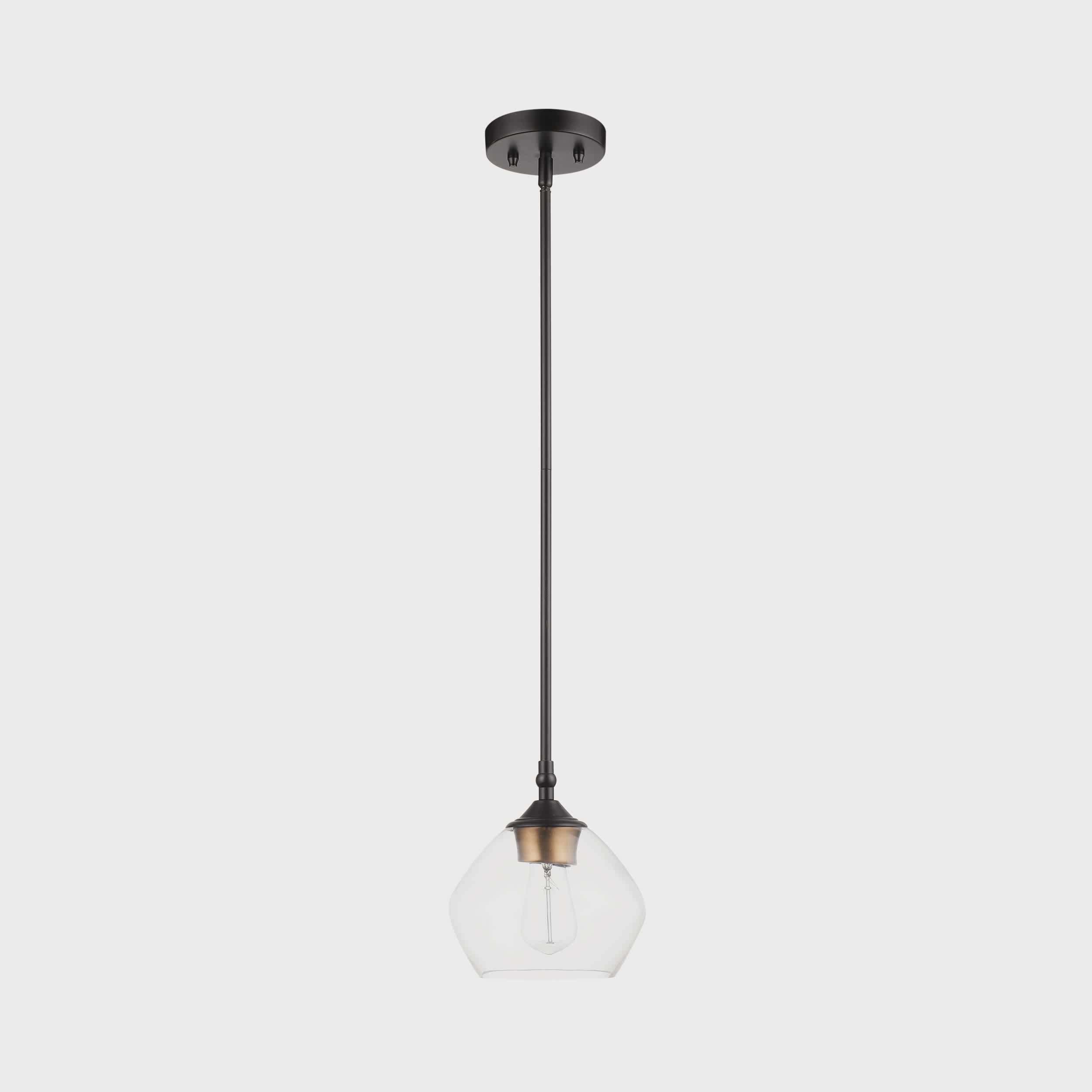 Pendentif à 1 lumière en noir mat avec abat-jour en verre transparent