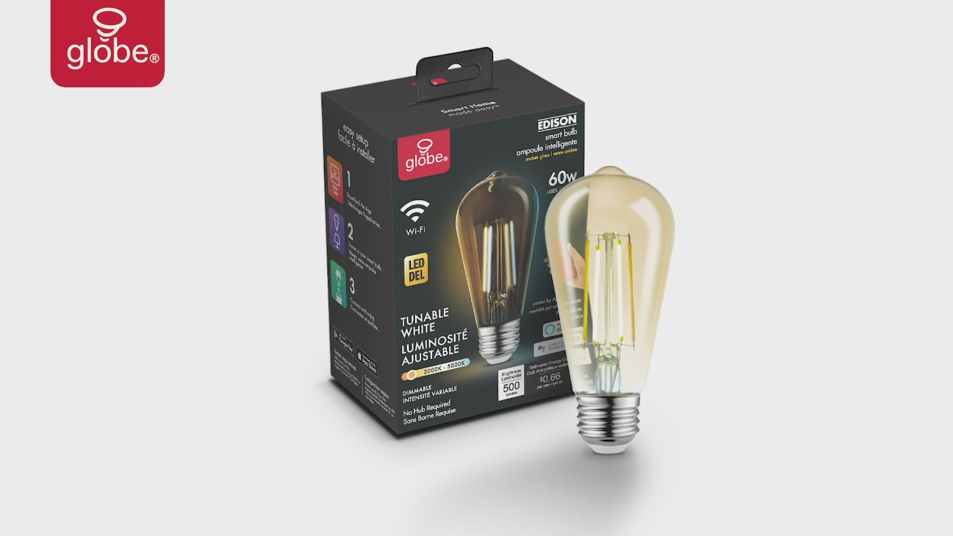 Smart A19 Vintage Filament Tunable White LED Bulb