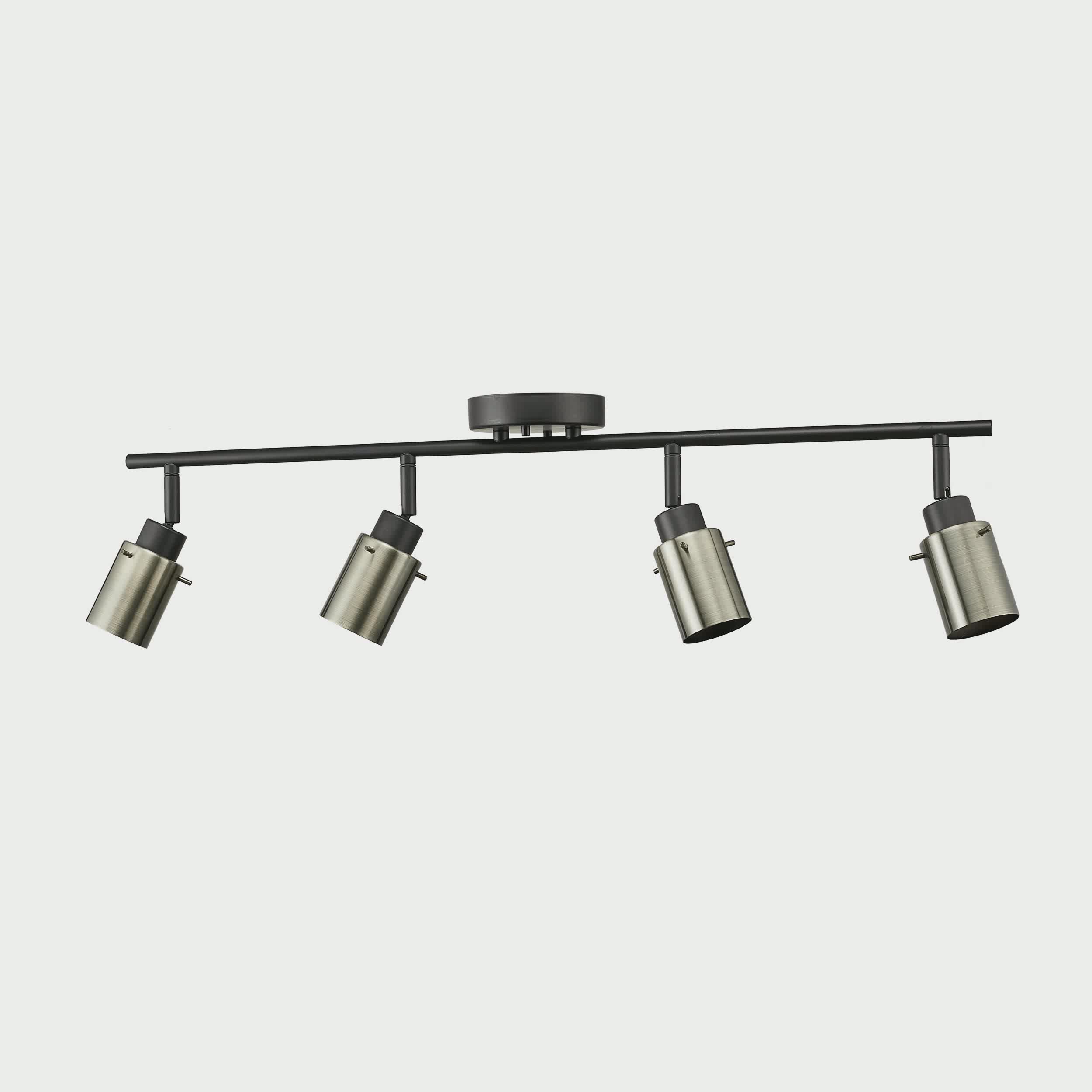 Starke 4-Light Track Lighting, Dark Bronze, Antique Brass Shades