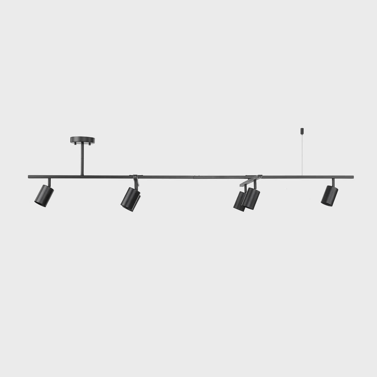 West 64" 6-Light Track Lighting, Matte Black, Faux Wood Center Swivel Bars